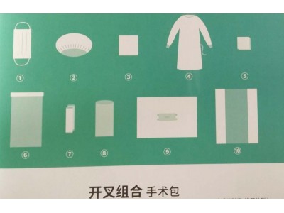 手术包配置:一次性使用医用口罩1个、一次性使用帽1个、擦手巾(40*38cm)8块、一次性使用手术衣3件、纱布块10块、器械盘套1条、备胶料(10*50cm)1条、医用防护罩(透明袋)1块、一次性使用手术洞巾1条、一次性使用包布1条